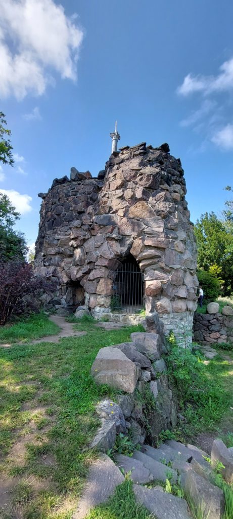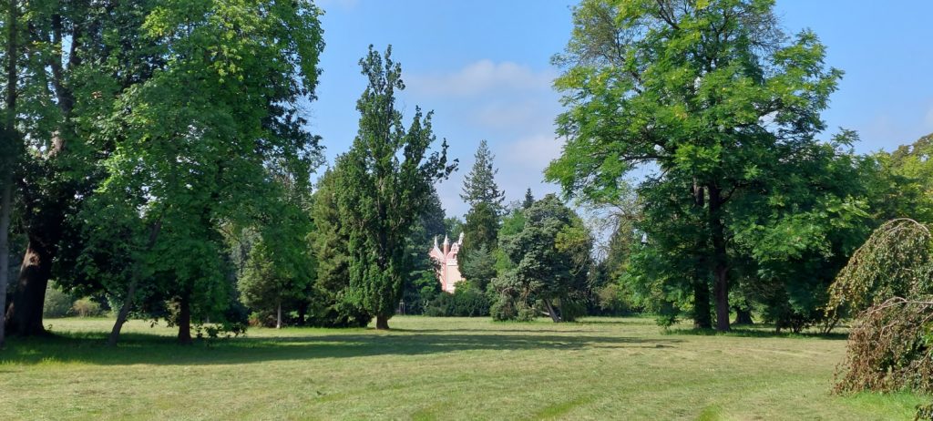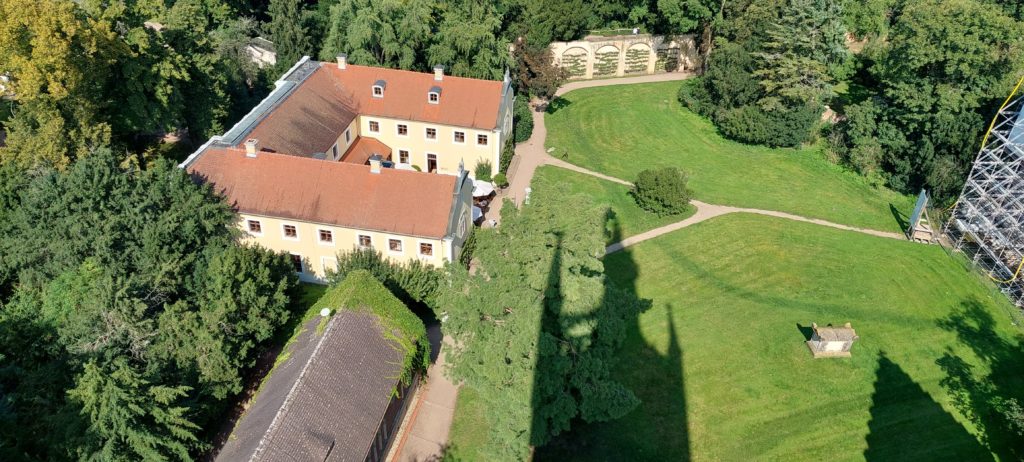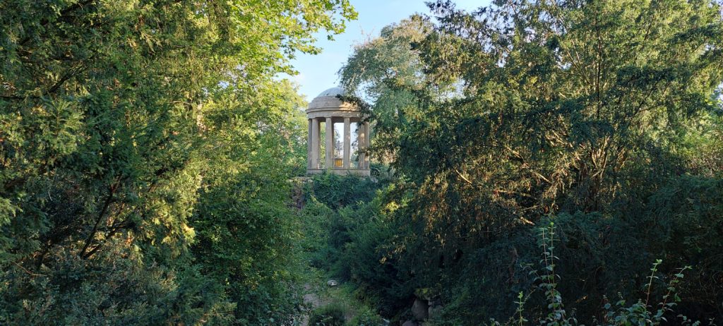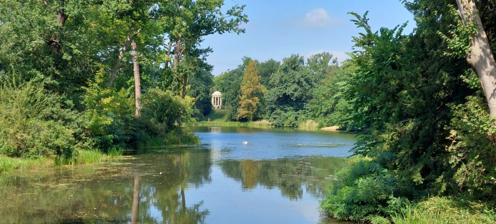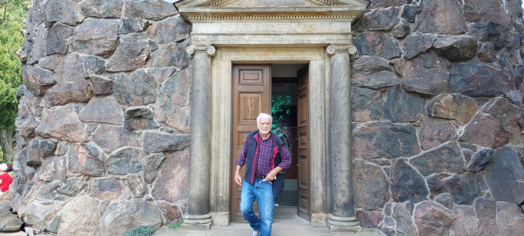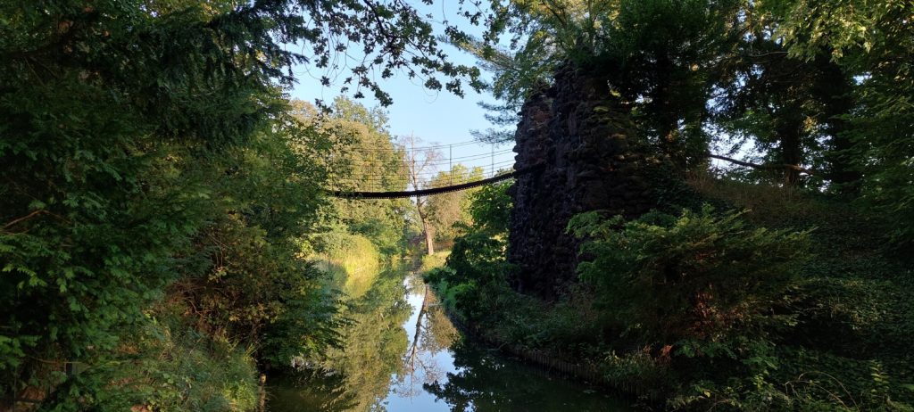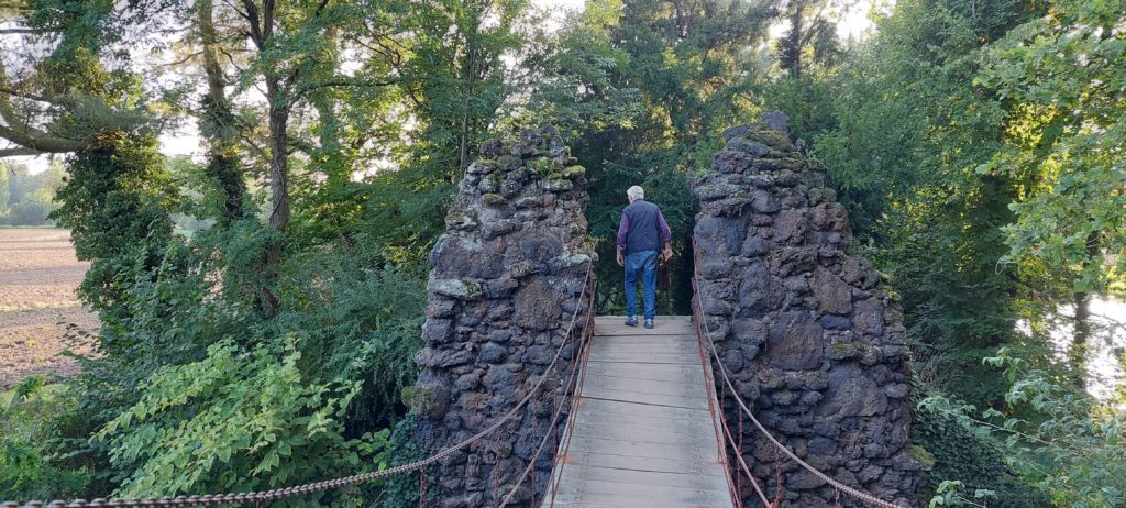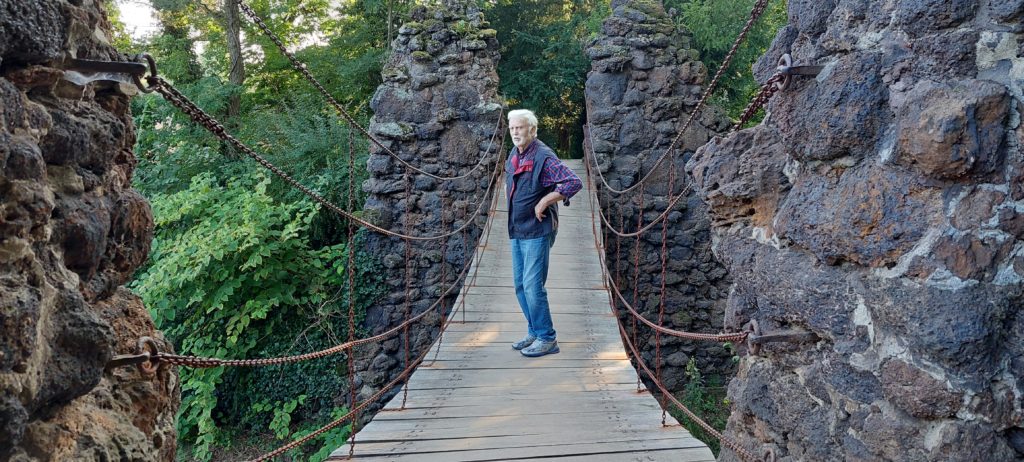Nach Verschnaufpause im Quartier noch kleine Radtour nach Coswig zur Elbfähre, ohne überzusetzen. Auf der Rückfahrt noch einige Sehenswürdigkeiten im Park mitgenommen, durch Höhlen geklettert (sehr raffiniert angelegt) , über Hängebrücken zum Venustempel.